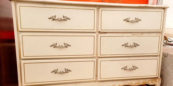 Cream coloured 6 drawer dresser with victorian style metal handles